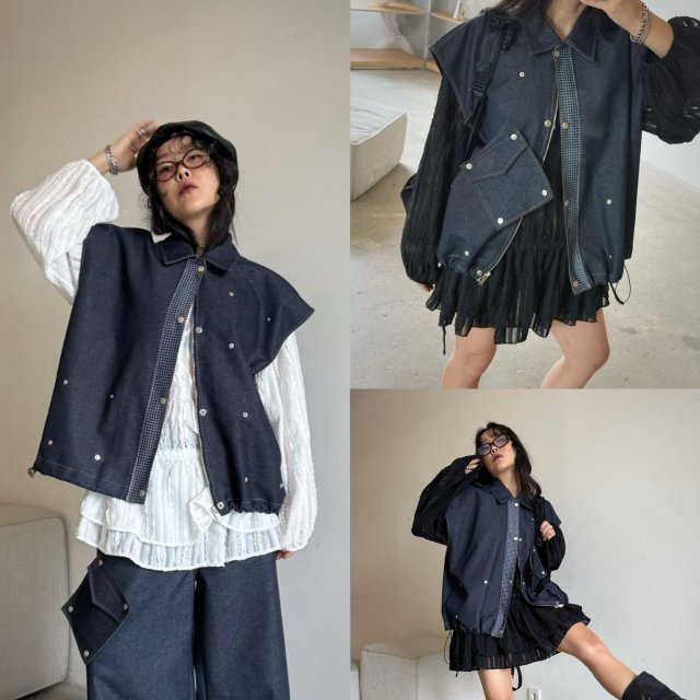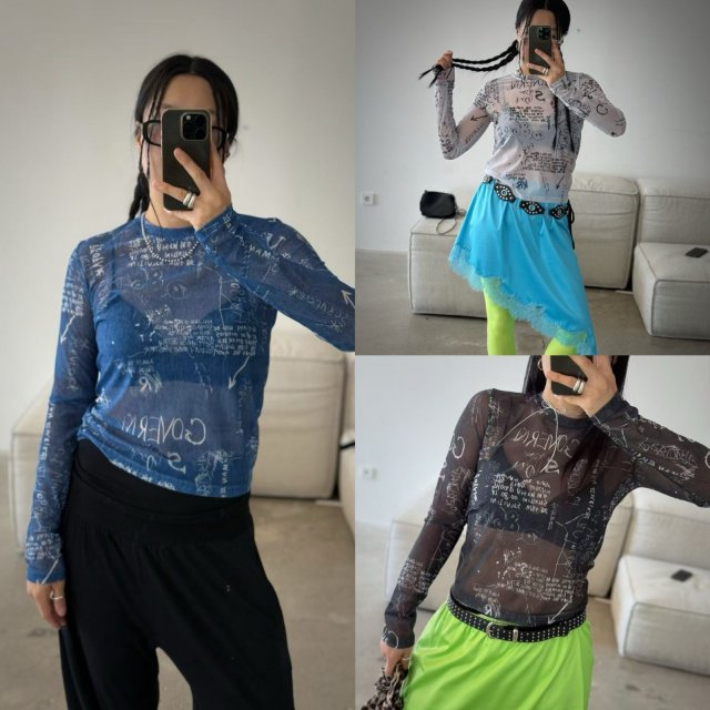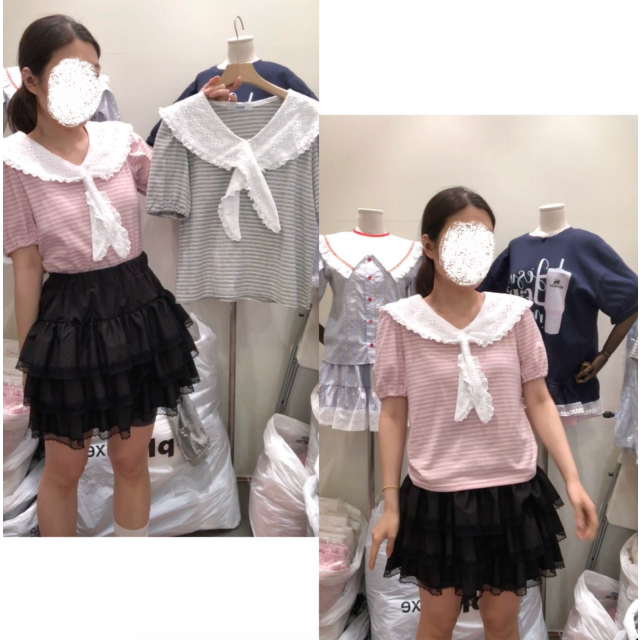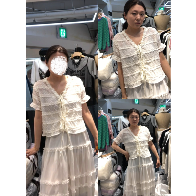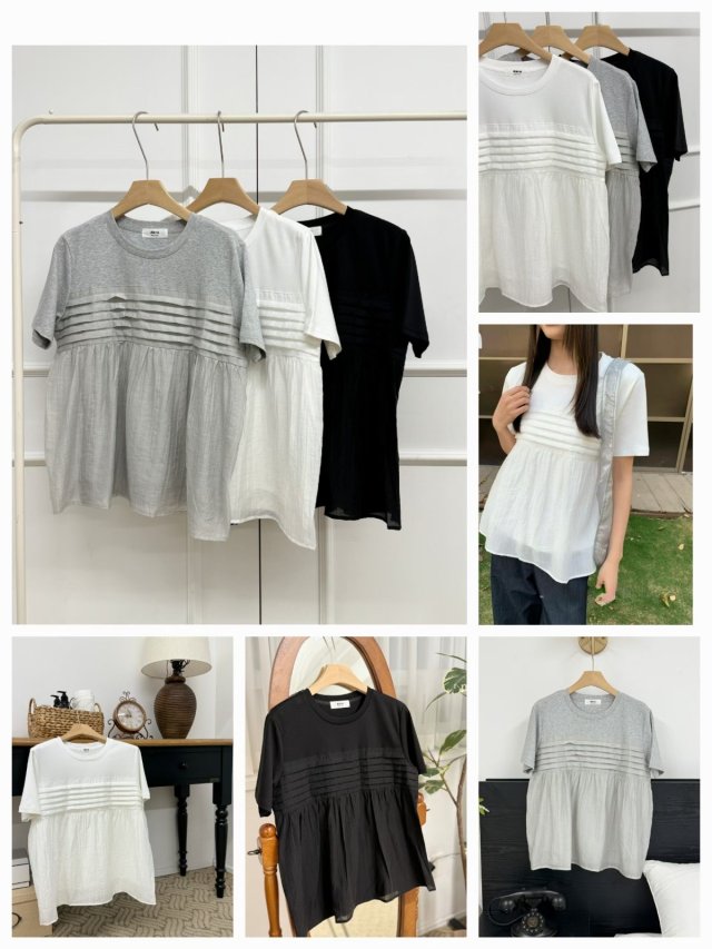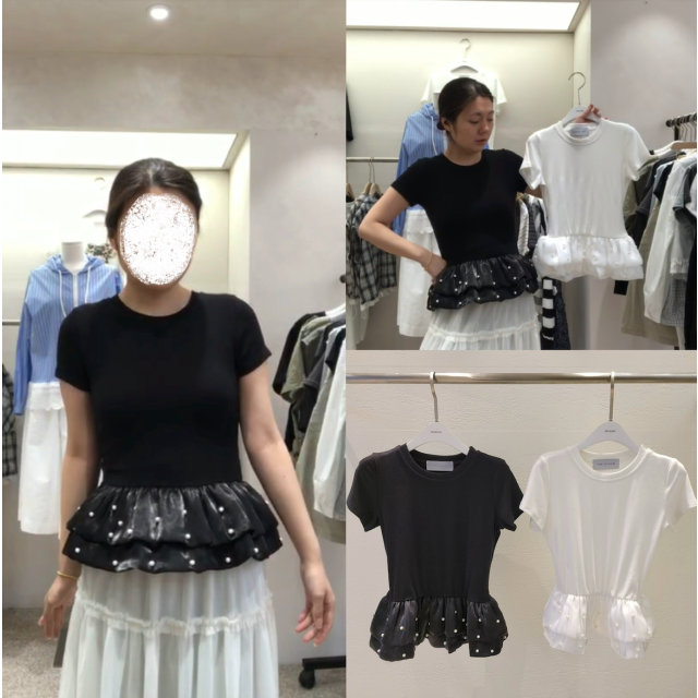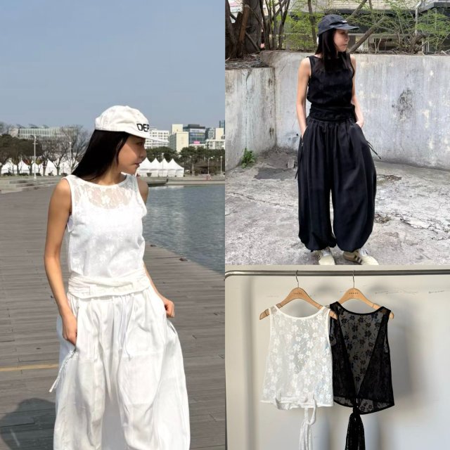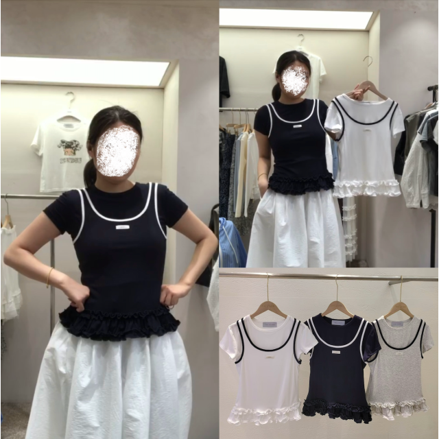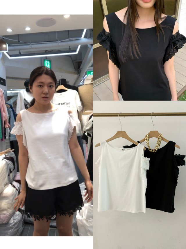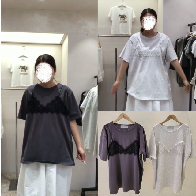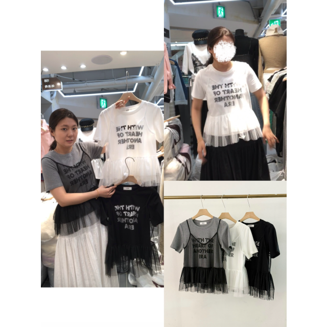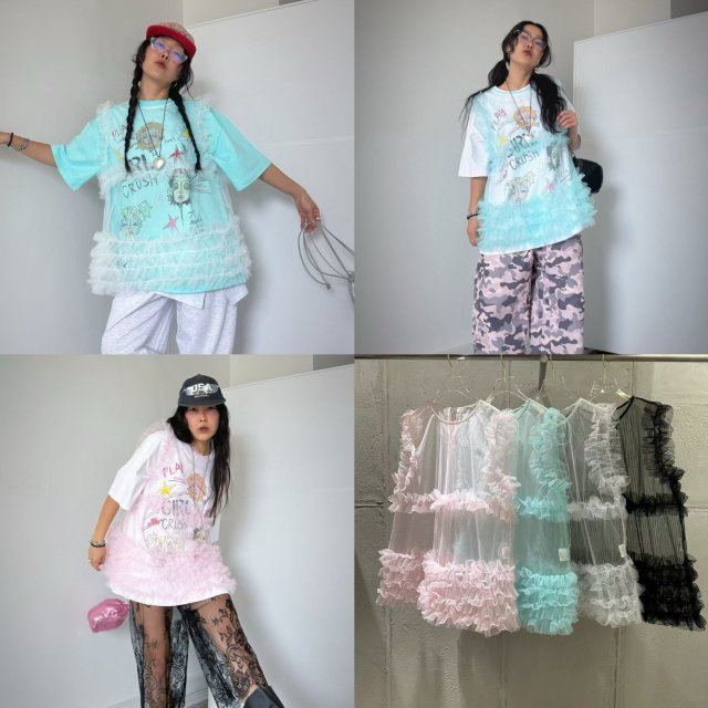 BK131 不規則蕾絲邊紗紗拼布TOP