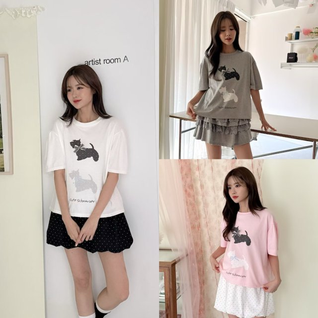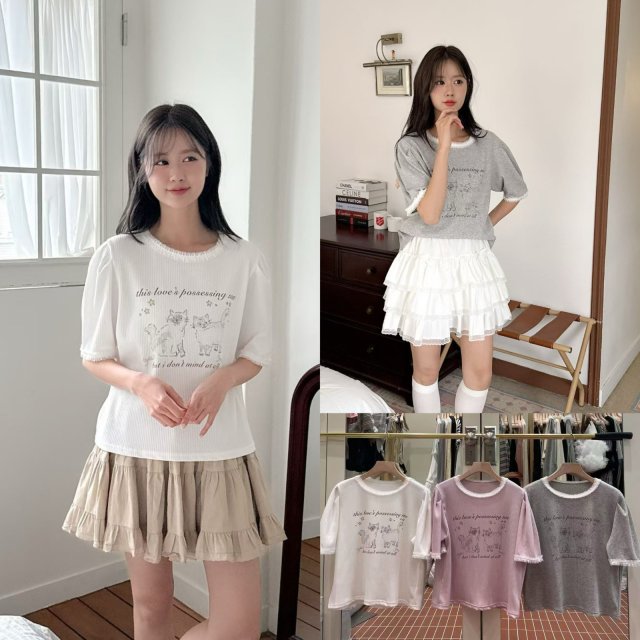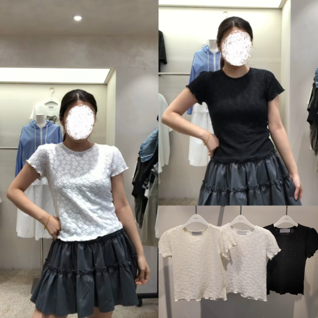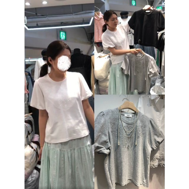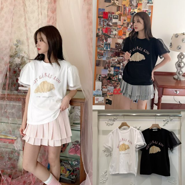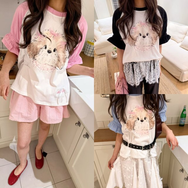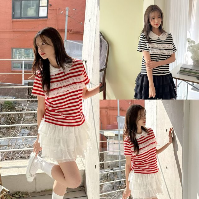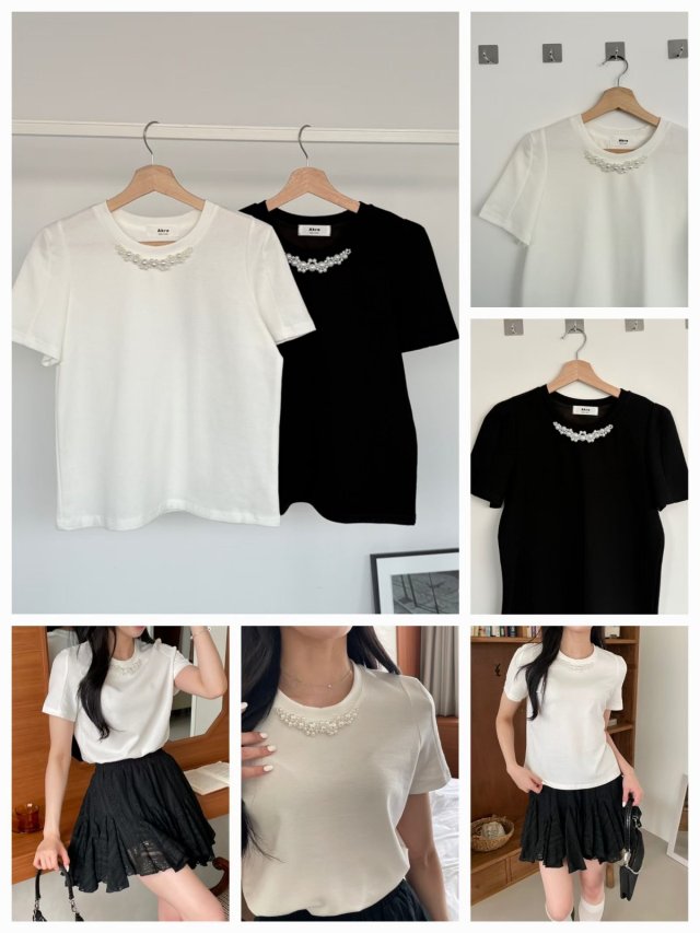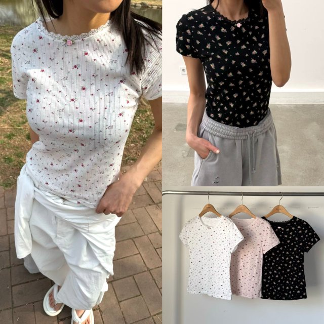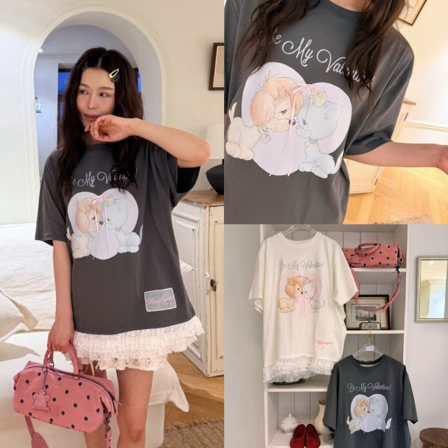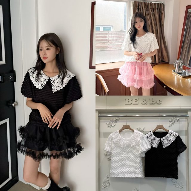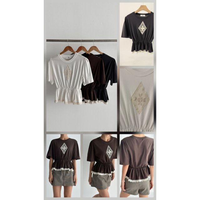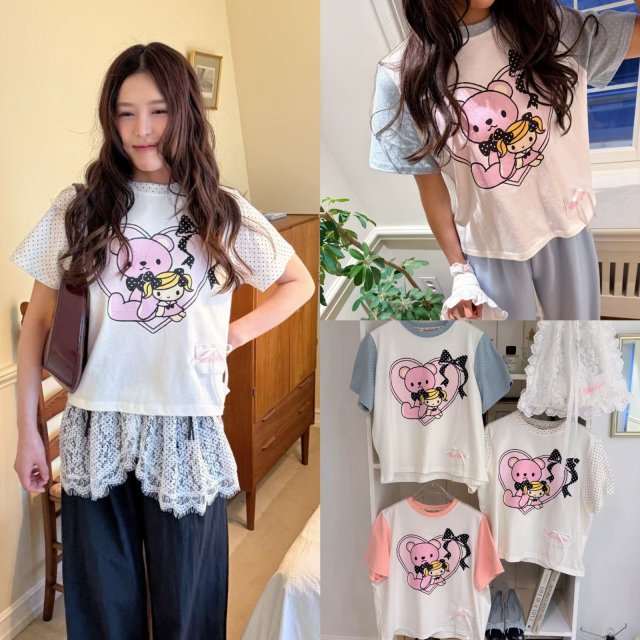 AD388 刺繡蕾絲邊蝴蝶結圖案TEE