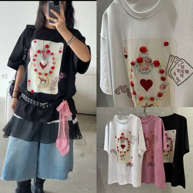 UN190 閃閃愛心立體玫瑰撲克牌TEE