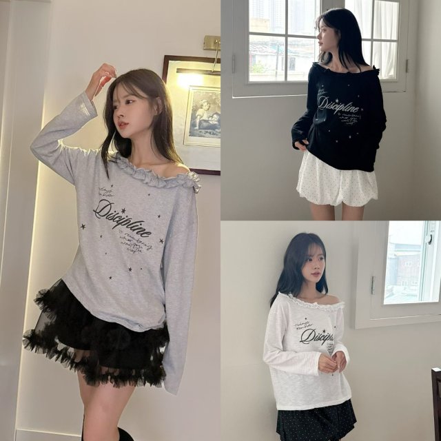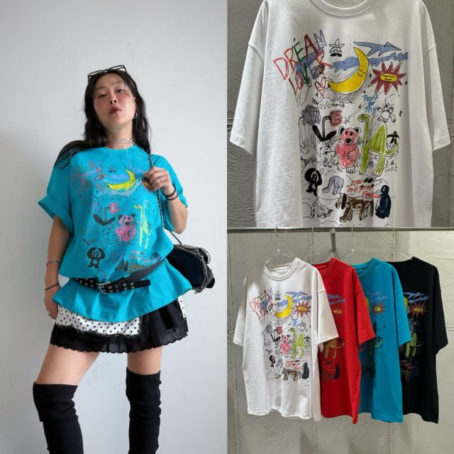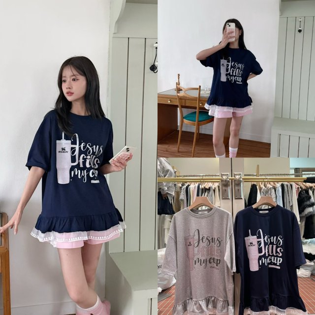 B883a 夢幻藍色小熊紗紗飛邊TEE