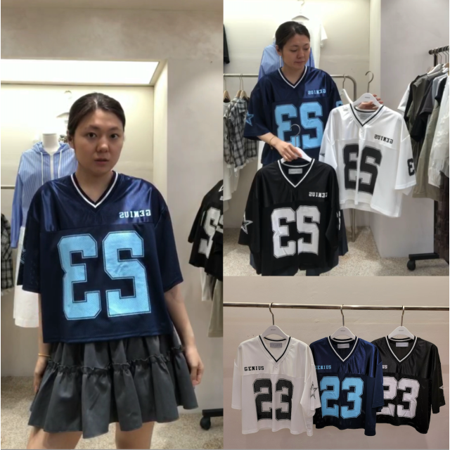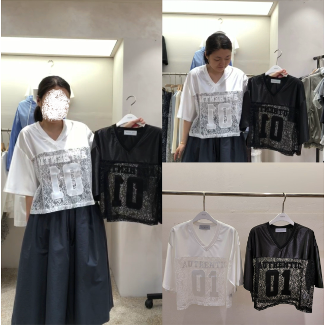 TO821 運動珠光感拼鏤空蕾絲邊球衣