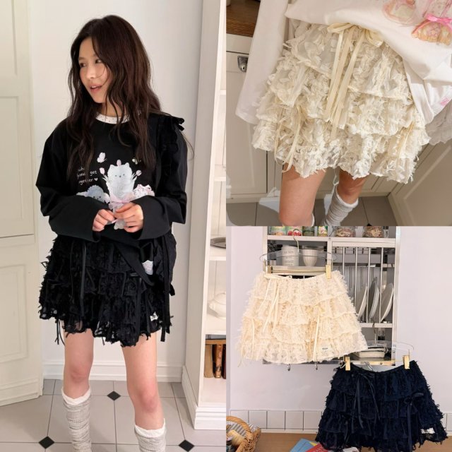 AW241 刺繡花花蕾絲紗紗多層蛋糕SK 98