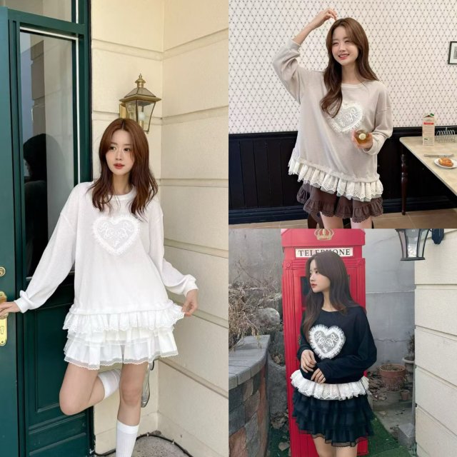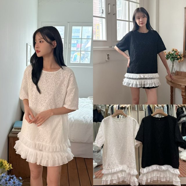 AD396 珠光感刺繡蕾絲邊蛋糕OP