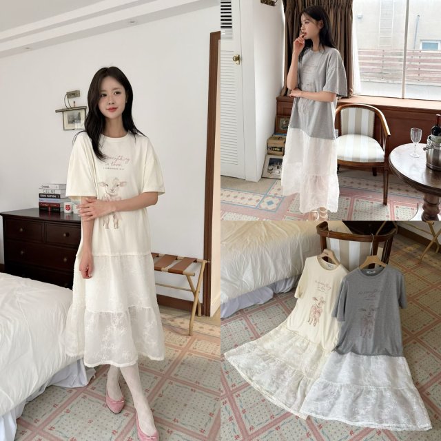BK129 刺繡蕾絲圍邊拼紗紗OP