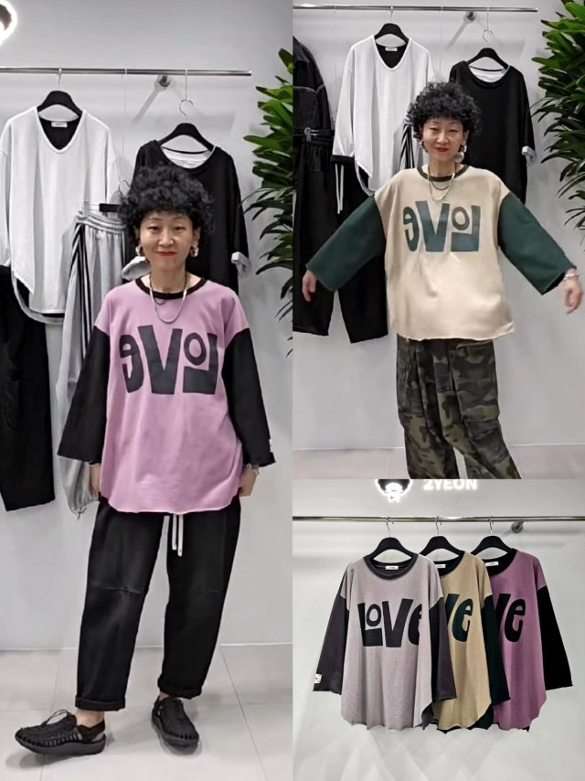 2Y49 LOVE拼色TOP
