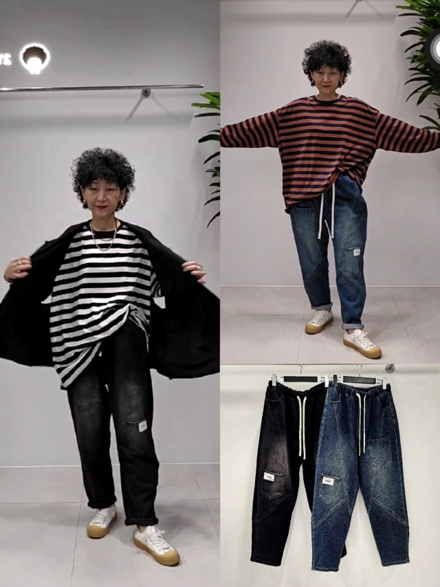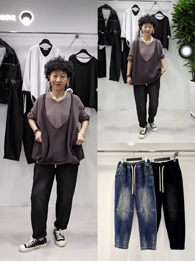 2Y85 仿牛仔拼接感PT