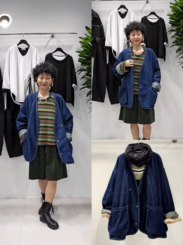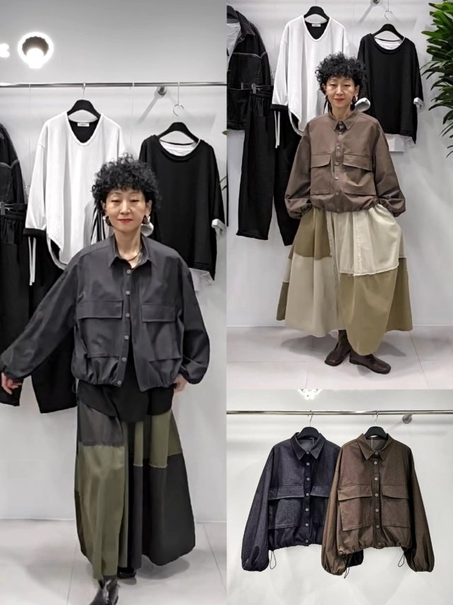 2Y86 仿牛仔拼poly料垂感JK