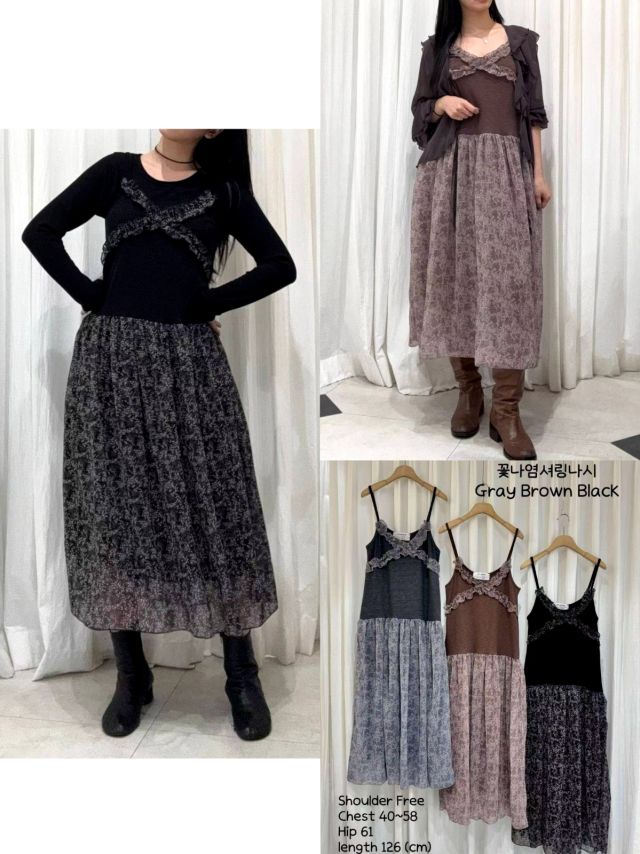 CK02 碎花紗紗拼布吊帶OP