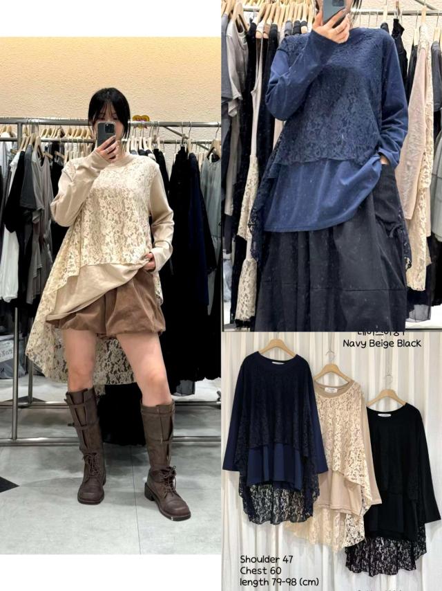 CK12 不規則刺繡蕾絲邊拼布TOP