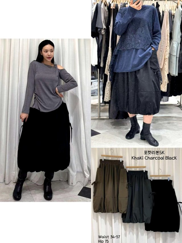 CK06 蝴蝶結口袋泡泡SK