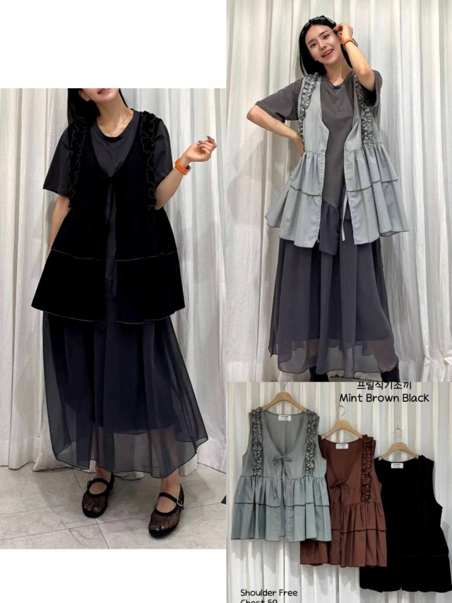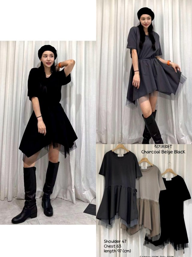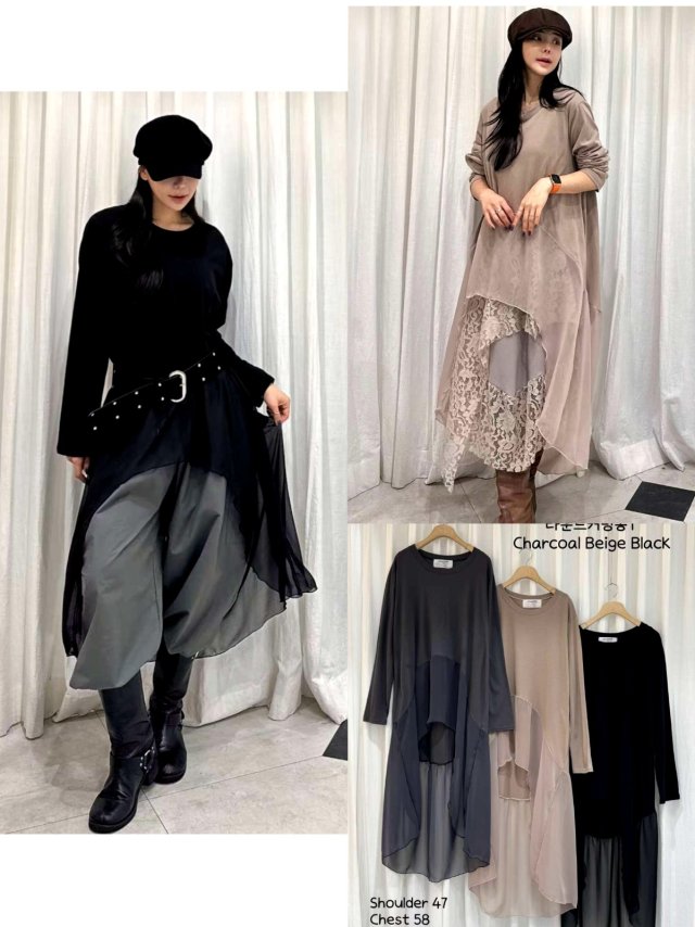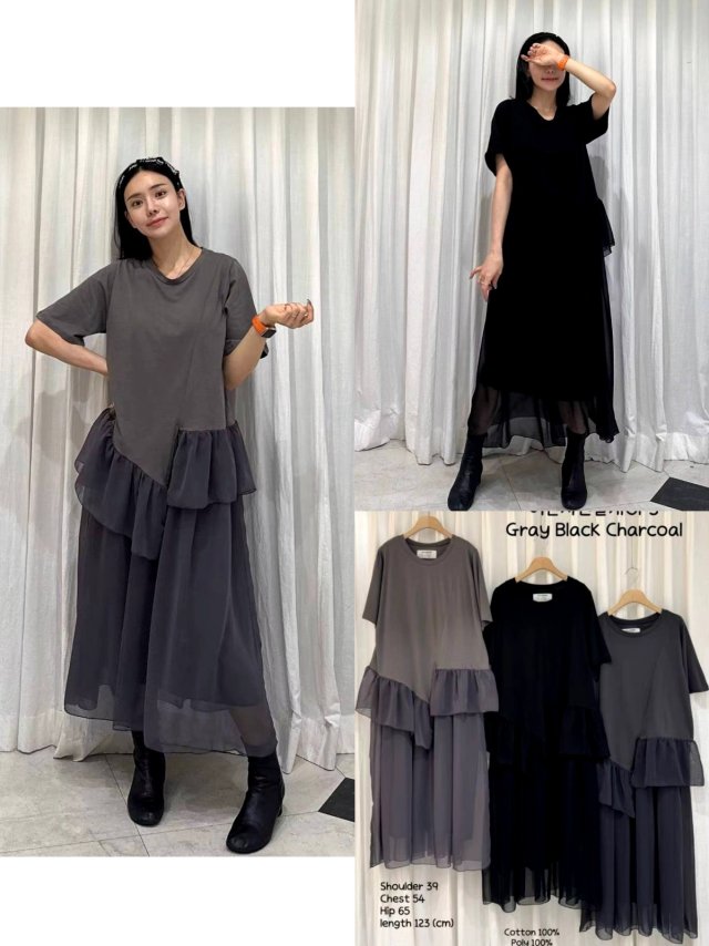 CK15 拼接感紗紗假兩件ruffle OP