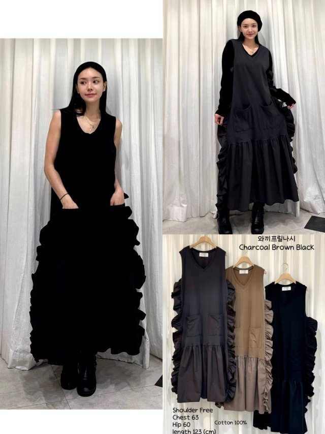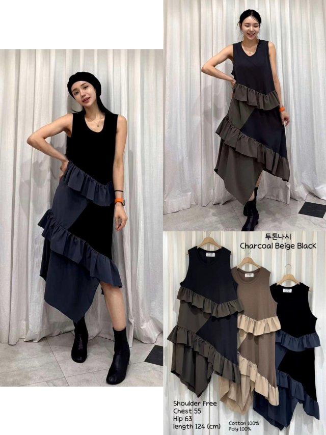 CK13 拼色飛邊不規則背心OP