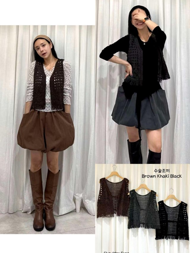 CK24 鉤針鏤空綁帶背心