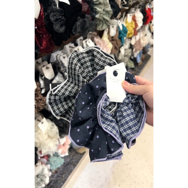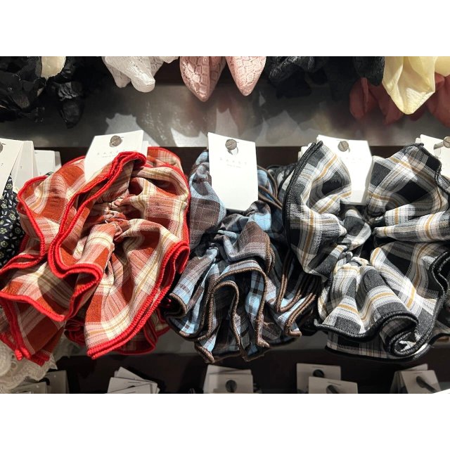 BAK407 磨毛香香格子大蝴蝶結頭箍