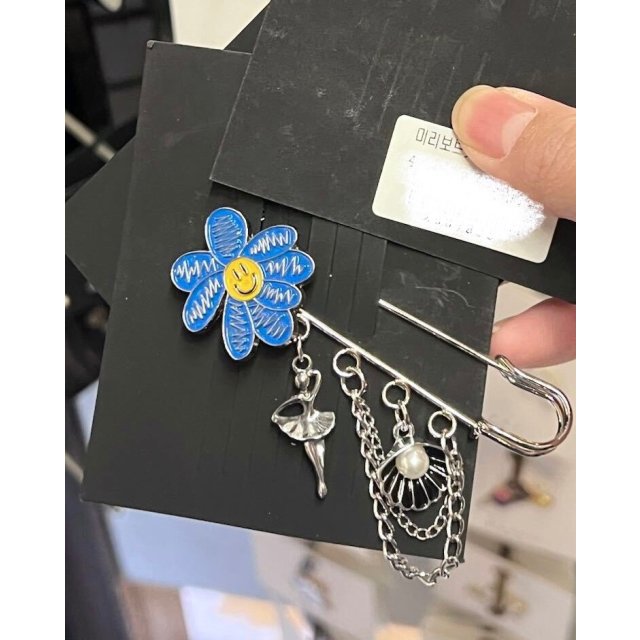 BAK438 彩色雛菊+貝殼萬字夾胸針2件套