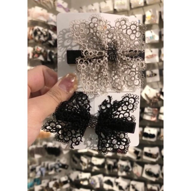 BAK417 軟毛針織蝴蝶結紗邊彈弓夾