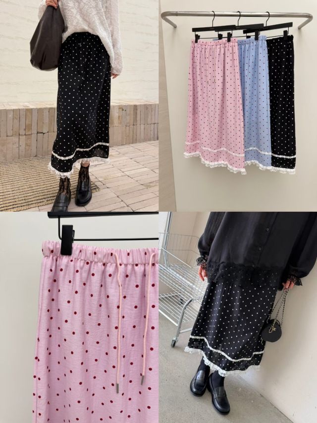 RW459 刺繡蕾絲邊波點SK