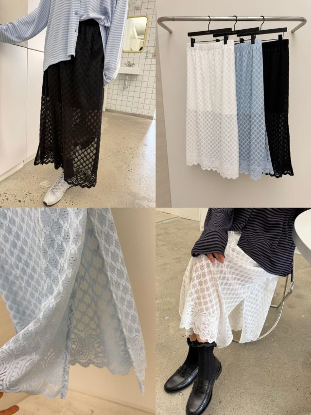 RW461 菱格紋波浪邊蕾絲SK