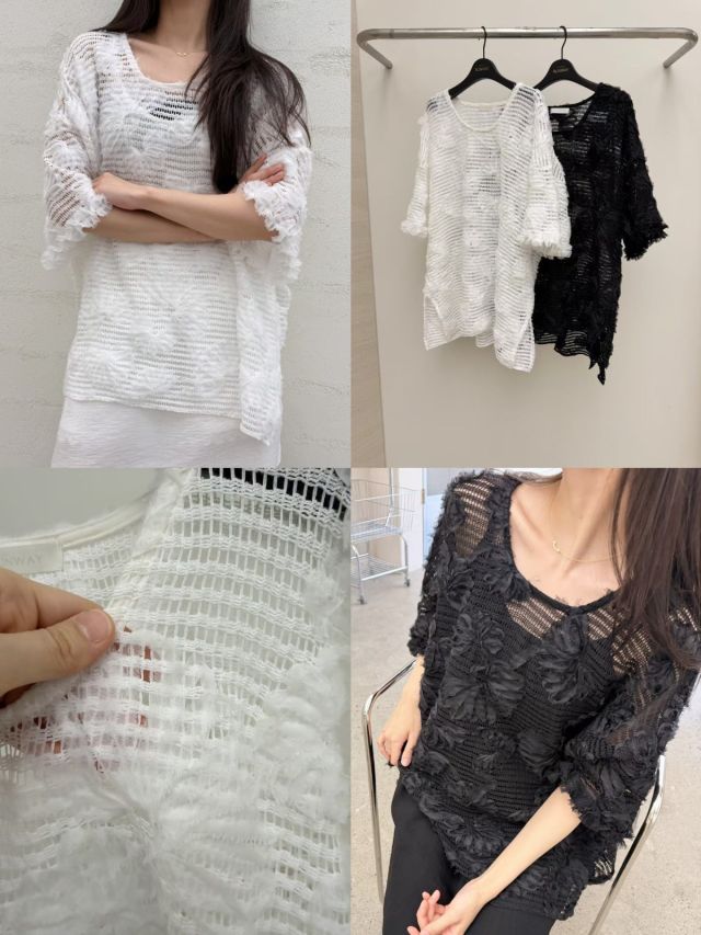 RW474 鉤針花花暗紋網紗TOP