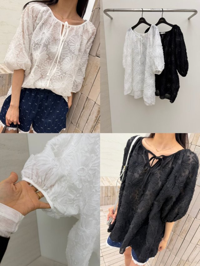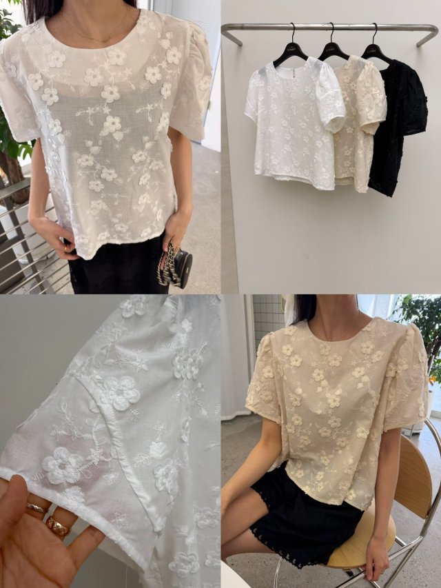 RW477 刺繡花花公主袖TOP