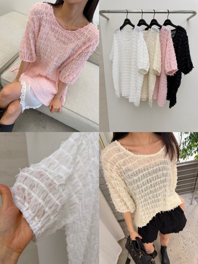 RW499 (薄款)羽毛感碎碎TOP