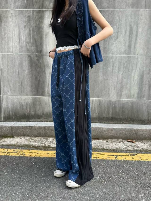BF102 皺皺拼邊愛心菱格牛仔PT
