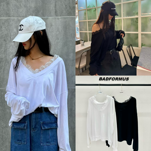 BF115 蕾絲邊大領露肩TOP