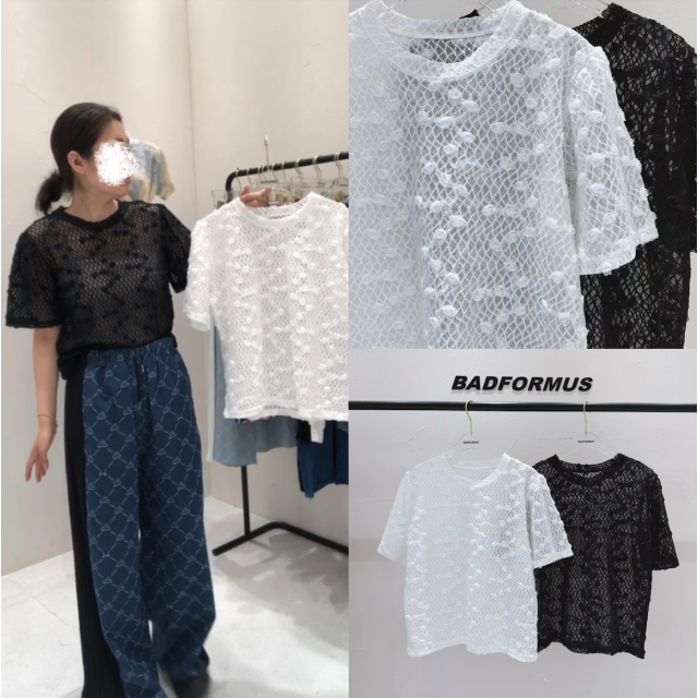 BF111 立體玫瑰網紗菱格TOP