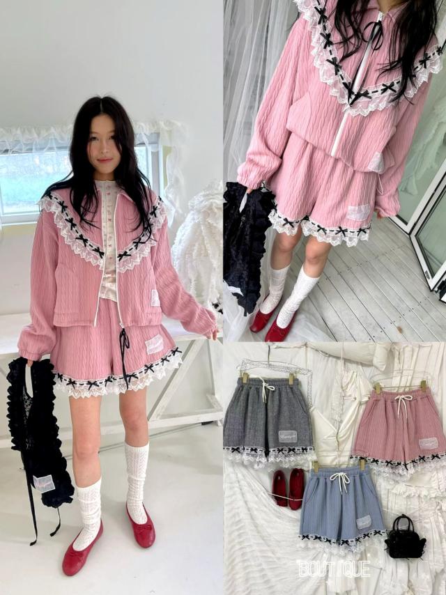 B816 蕾絲拼接蝴蝶結邊JK