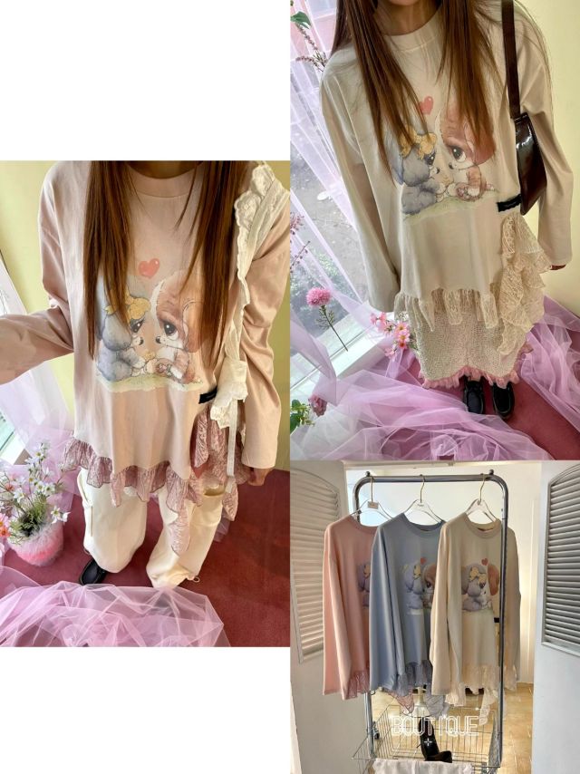 B830 可憐小狗蕾絲邊Top