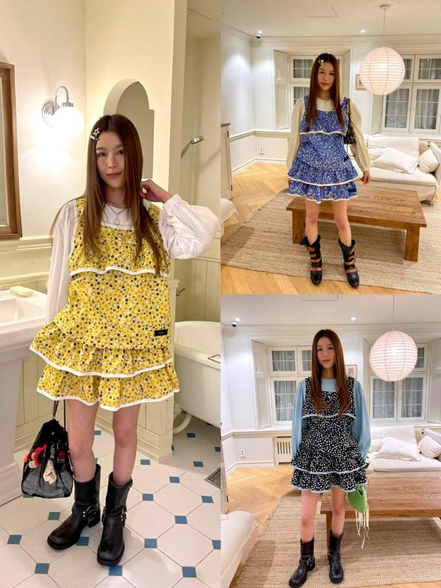 B850 碎花三層蕾絲JK
