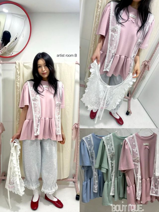 B817 蕾絲拼接蝴蝶結邊PT