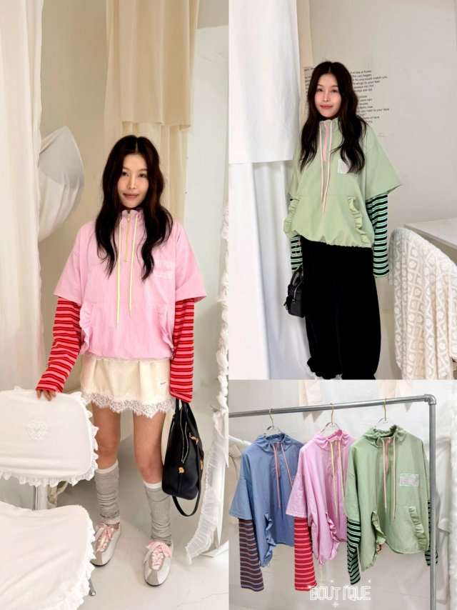 B834 碎花點點連帽JK