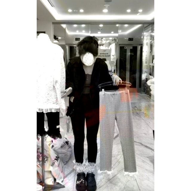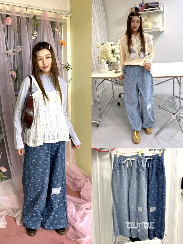 B809 花花刺繡邊小麻花紋打底PT