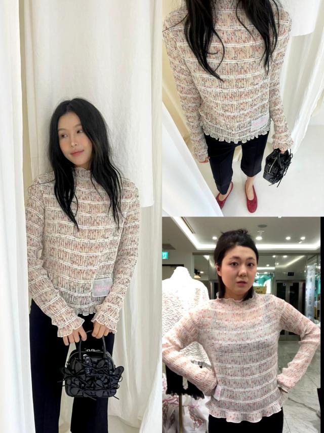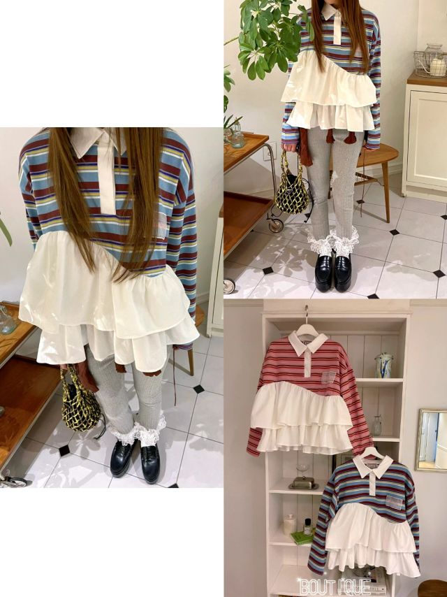 B824 polo領間條雙層飛邊TOP