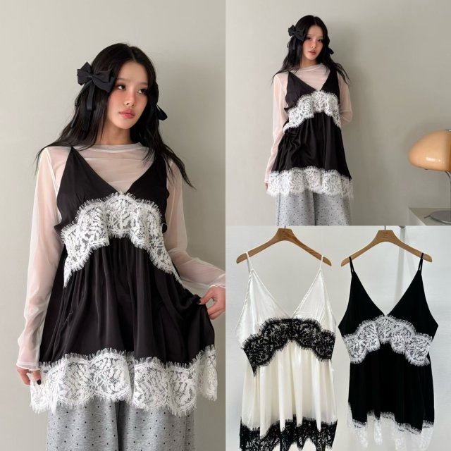 MA151 撞色刺繡蕾絲吊帶TOP