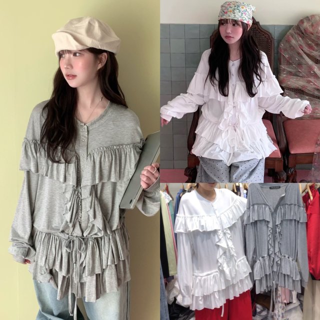 MA148 層層ruffle綁帶修腰TOP