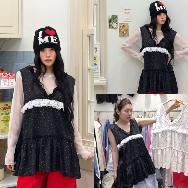 MA146 雙層小飛邊波點背心