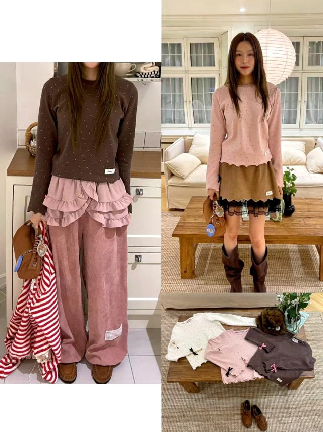 B699 波點木耳邊打底Top