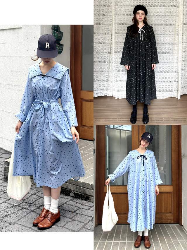 KB353 水手領愛心綁帶長袖OP