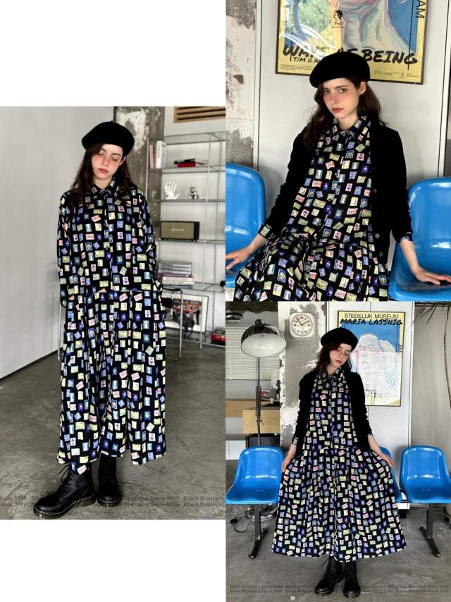 KB355 花布娃娃感花花長袖OP