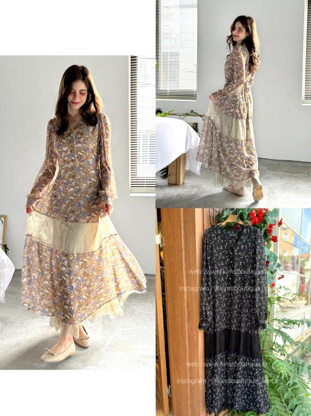 KB364 彩色花花拼蕾絲OP