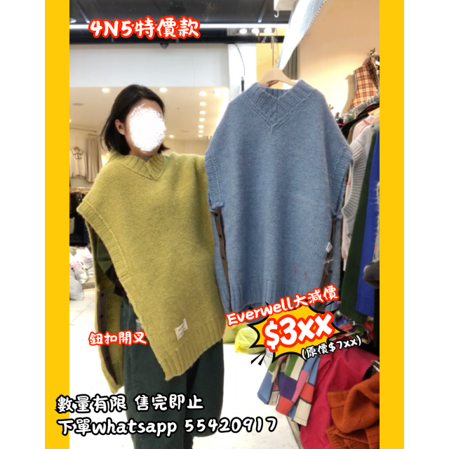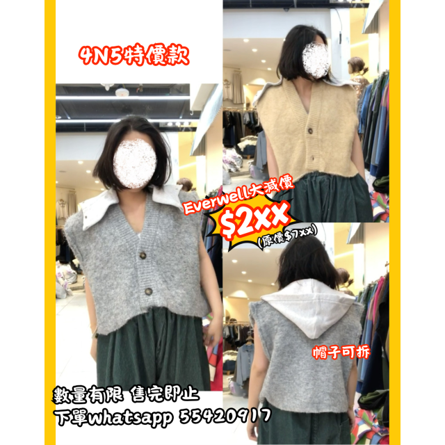 4N536 🉐50%羊毛可拆式帽子針織馬甲