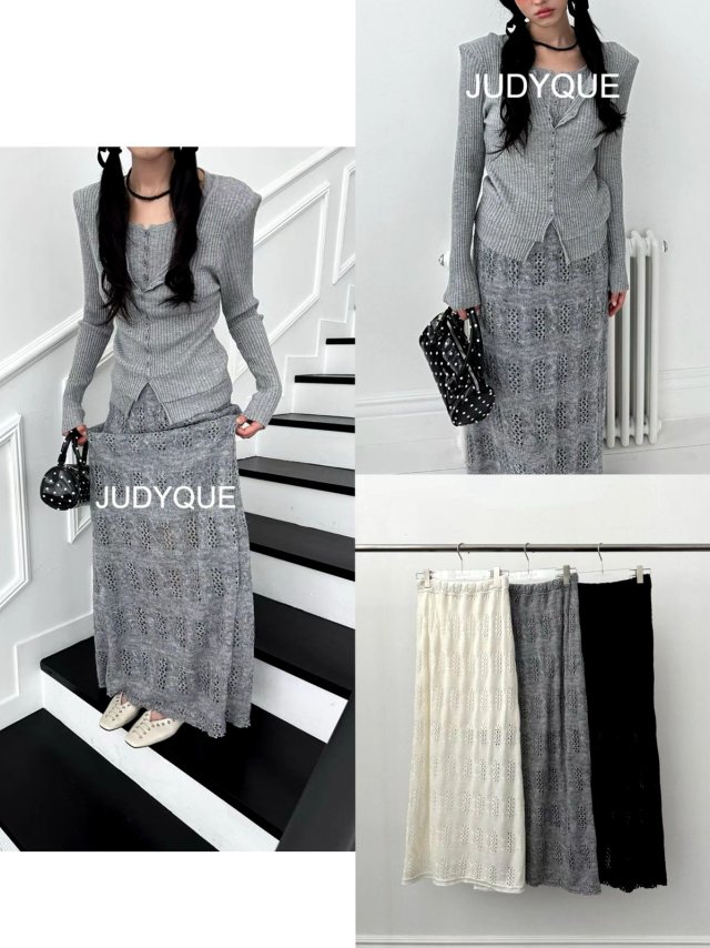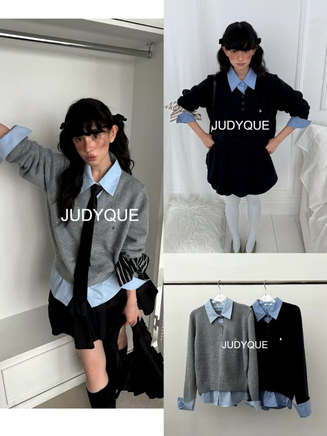 JD296 polo領鏤空針織2件套(上衣+外搭)