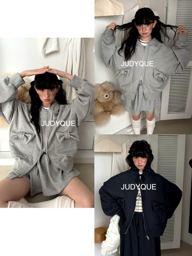 JD300 薄珠地大蝴蝶結口袋連帽JK