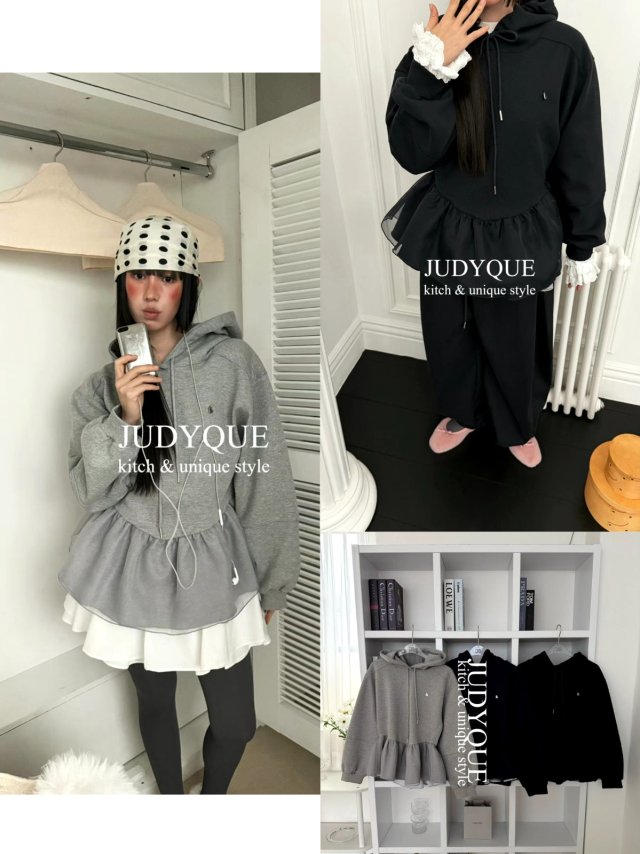 JD352 荷葉邊帶帽衛衣