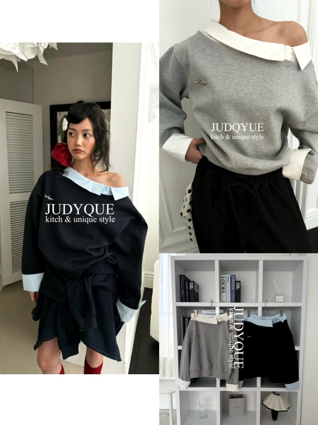 JD360 假兩件襯衫斜肩Top
