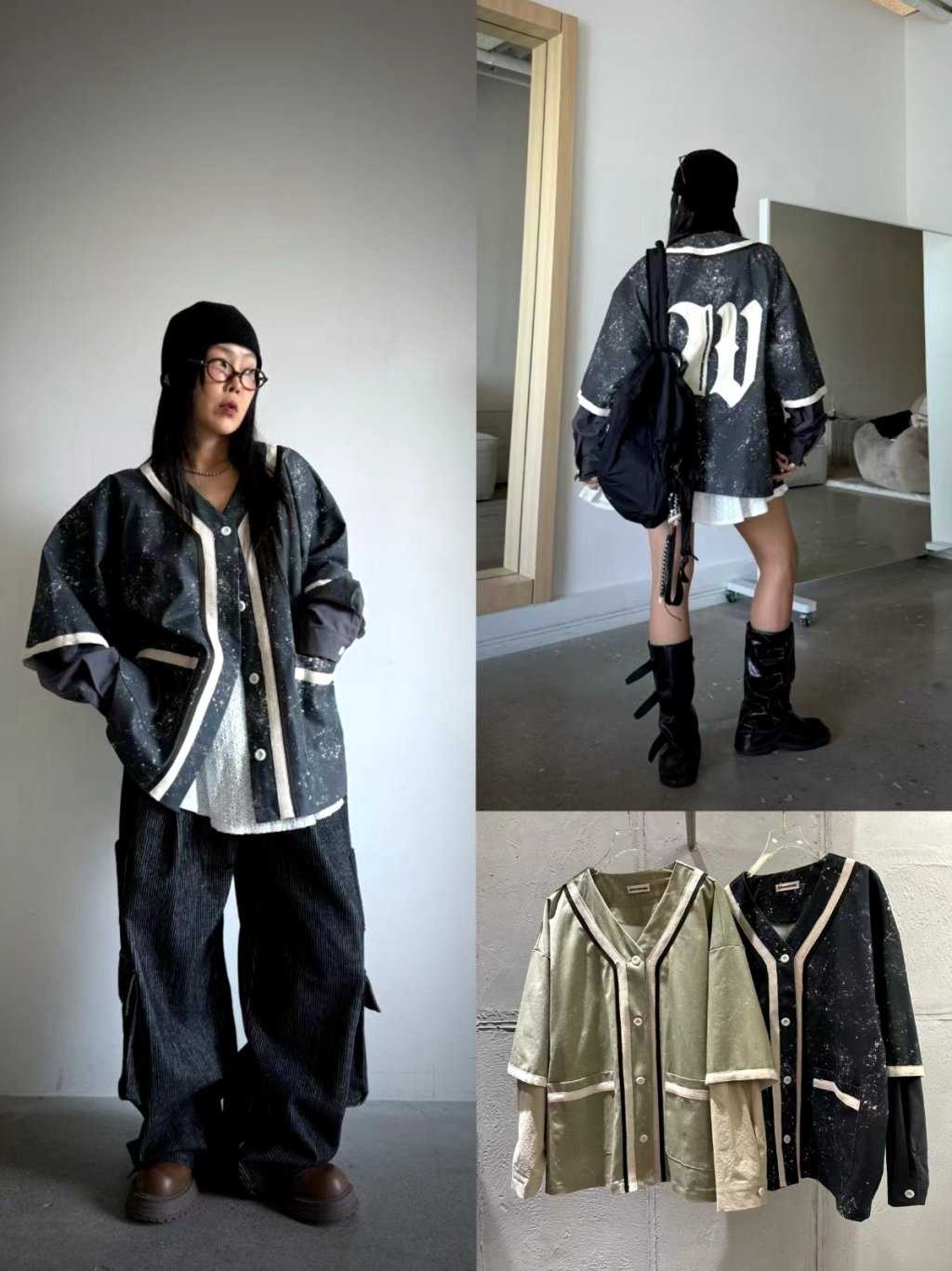 UN19 潑墨拼色假兩件JK