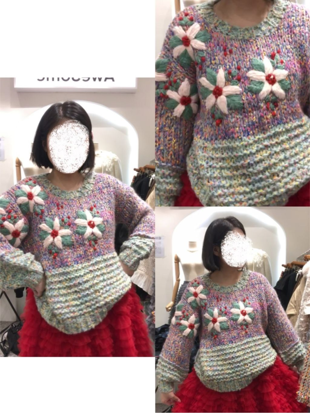 AW165 30%羊毛刺繡花花混色針織TOP 54/25 ❌原價$540 ✅Everwell限時下單價$490