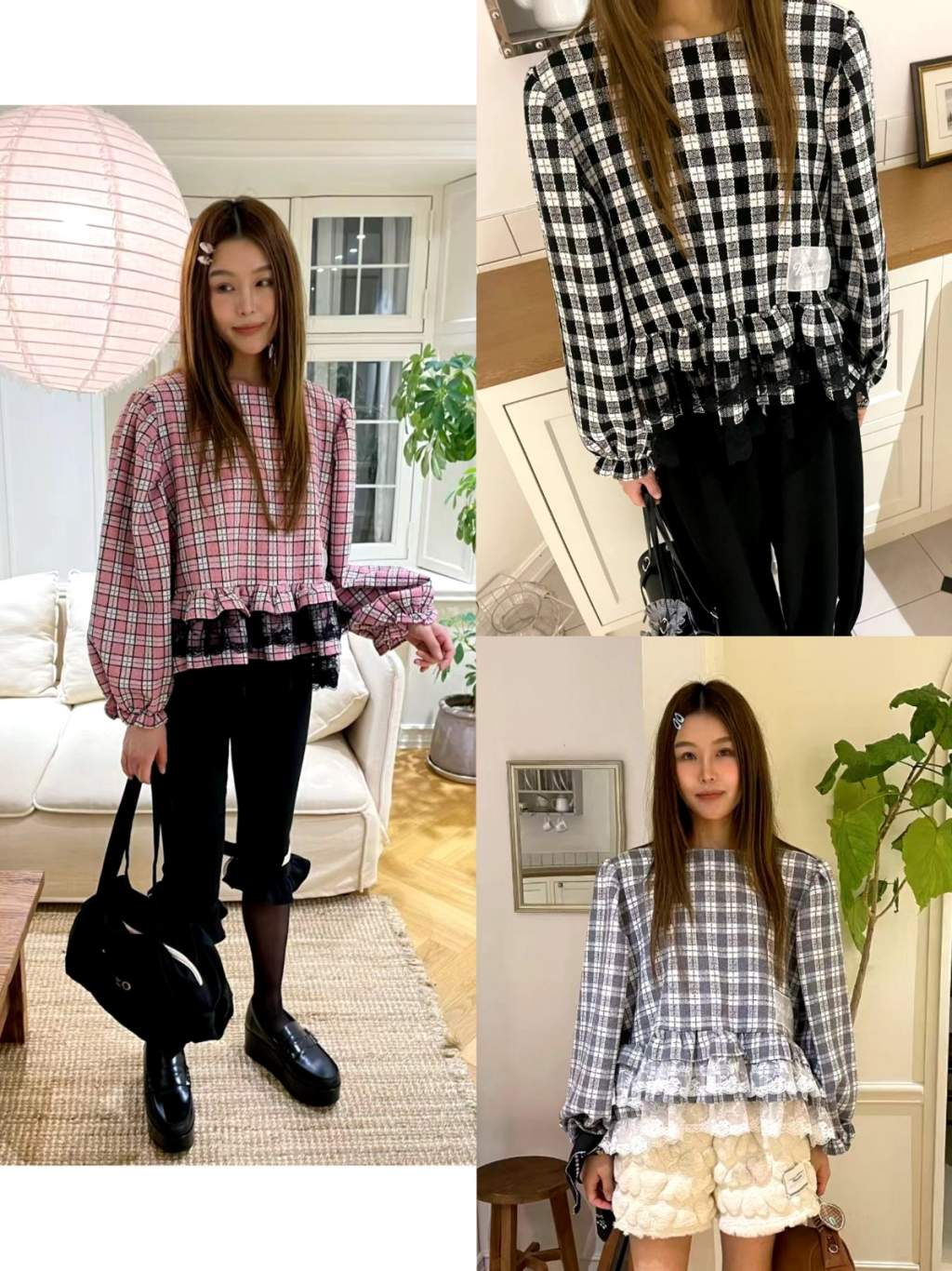 B735 娃娃格仔蕾絲邊Top 49/24 ❌ 原價$628✅Everwell限時下單價$578